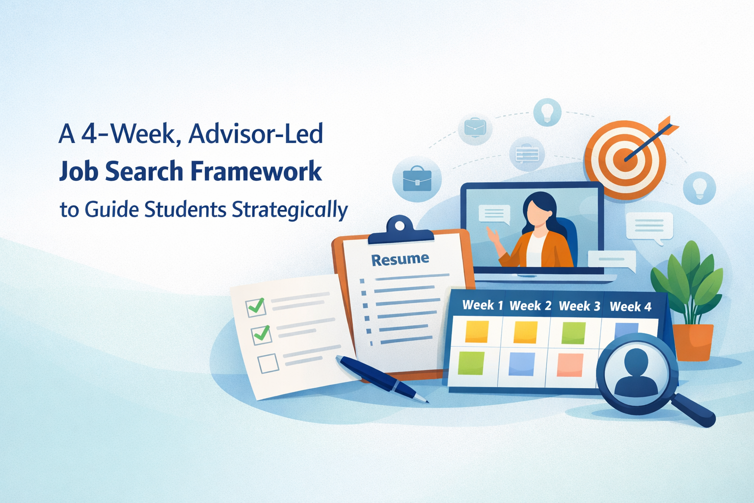 A structured 4-week job search plan gives advisors visibility into student activity, replaces vague effort with measurable signals, and enables timely intervention across resumes, applications, networking, and interviews without increasing advisor workload.