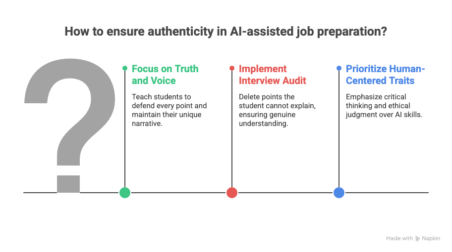 - Resume "Uniqueness" Check: If a student’s resume sounds like every other applicant, it’s a fail. Set a rule: Every bullet point must contain a specific name of a project, software, or metric that an AI couldn't have guessed.