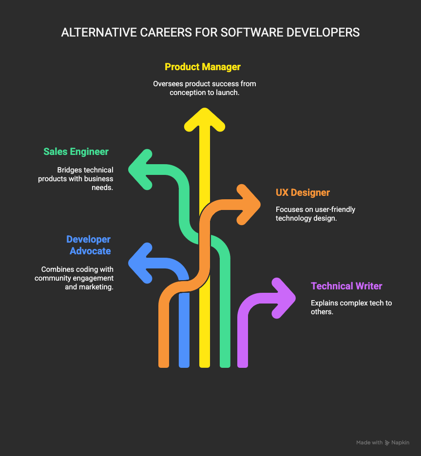 Here are 5 alternate career paths that let you use your software-engineering background to your advantage.