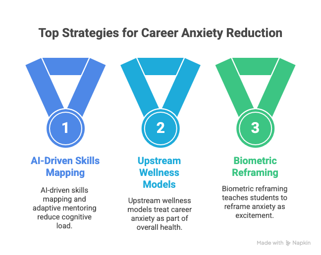 Pro-Tip: Use "Biometric Reframing." During mock interviews, teach students to reframe physical anxiety (racing heart) as "excitement for the opportunity." Research in PMC - NIH shows that subjective well-being acts as a mediator between psychological resilience and future anxiety.