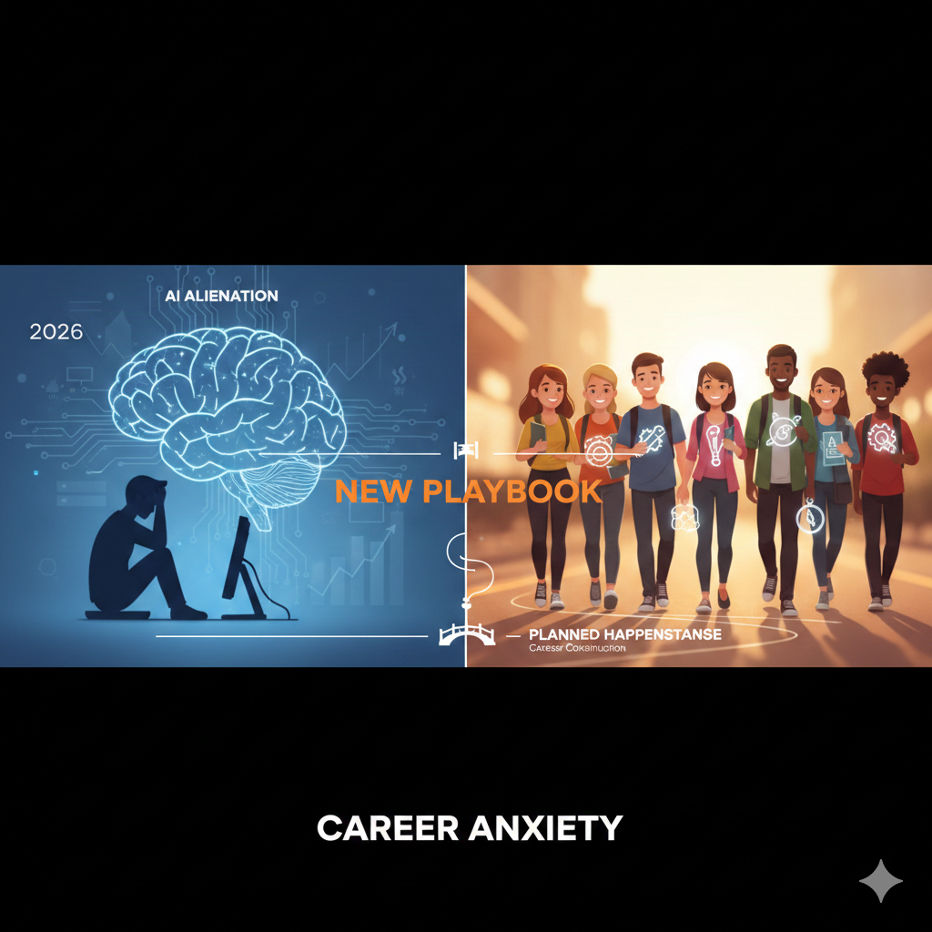 Students today face a unique psychological barrier called "AI Alienation," where they feel a lack of control over their professional outcomes due to algorithmic hiring and automation fears. This creates a state of "career self-efficacy" collapse, making even simple tasks like networking feel futile or overwhelming to the average student.