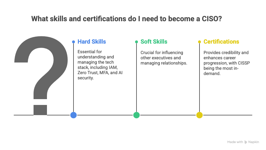 You need a "T-shaped" skill set: deep technical knowledge in areas like Identity and Access Management (IAM) and broad business skills. The CISSP and CISM remain the gold standard certifications for aspiring executives.