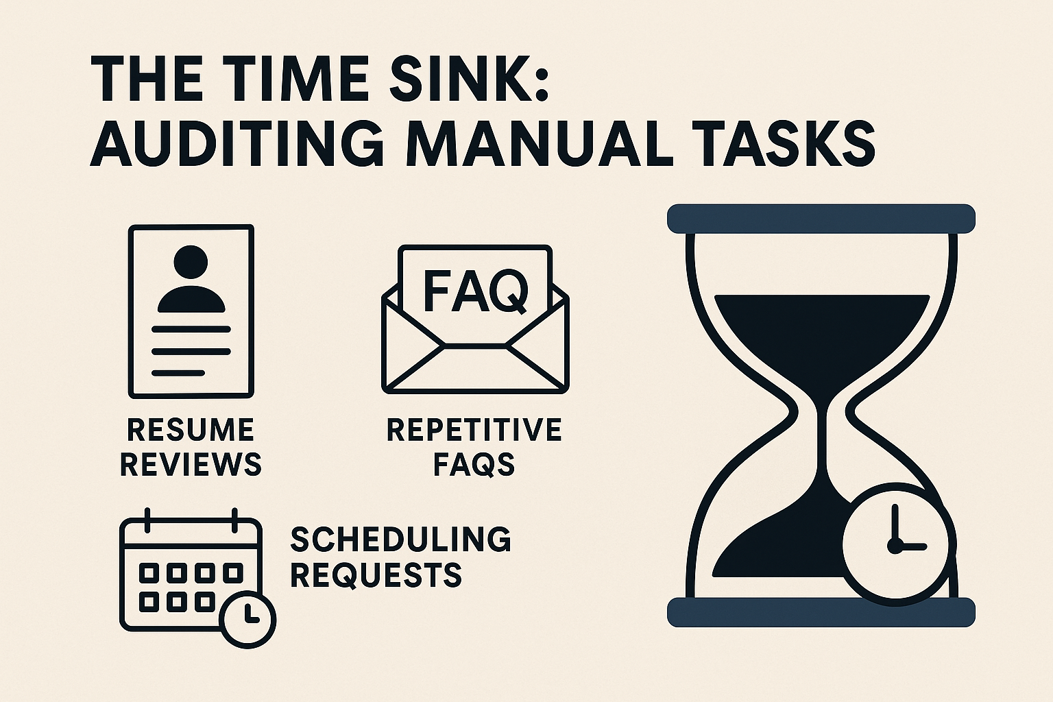 Resume and cover letter reviews, answering repetitive FAQs, and manual event and appointment logistics consume significant staff time.