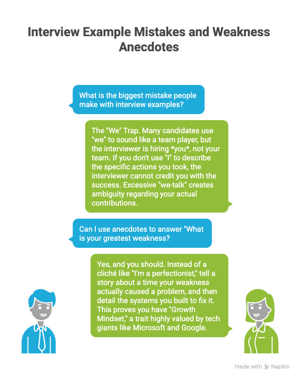 The "We" Trap. Many candidates use "we" to sound like a team player, but the interviewer is hiring you, not your team. If you don't use "I" to describe the specific actions you took, the interviewer cannot credit you with the success. Excessive "we-talk" creates ambiguity regarding your actual contributions.