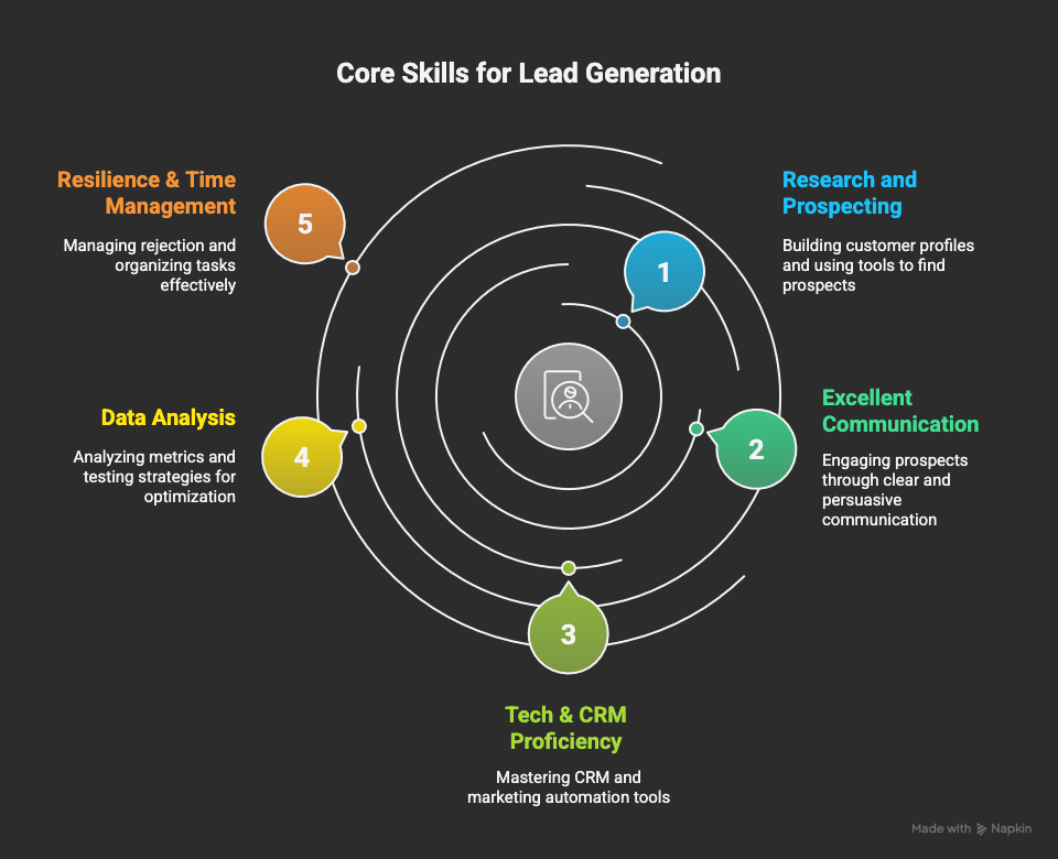 A successful lead generation specialist is part-scientist, part-artist, and part-detective. They blend creative outreach with data-driven analysis. While job requirements vary, these five skills are non-negotiable.