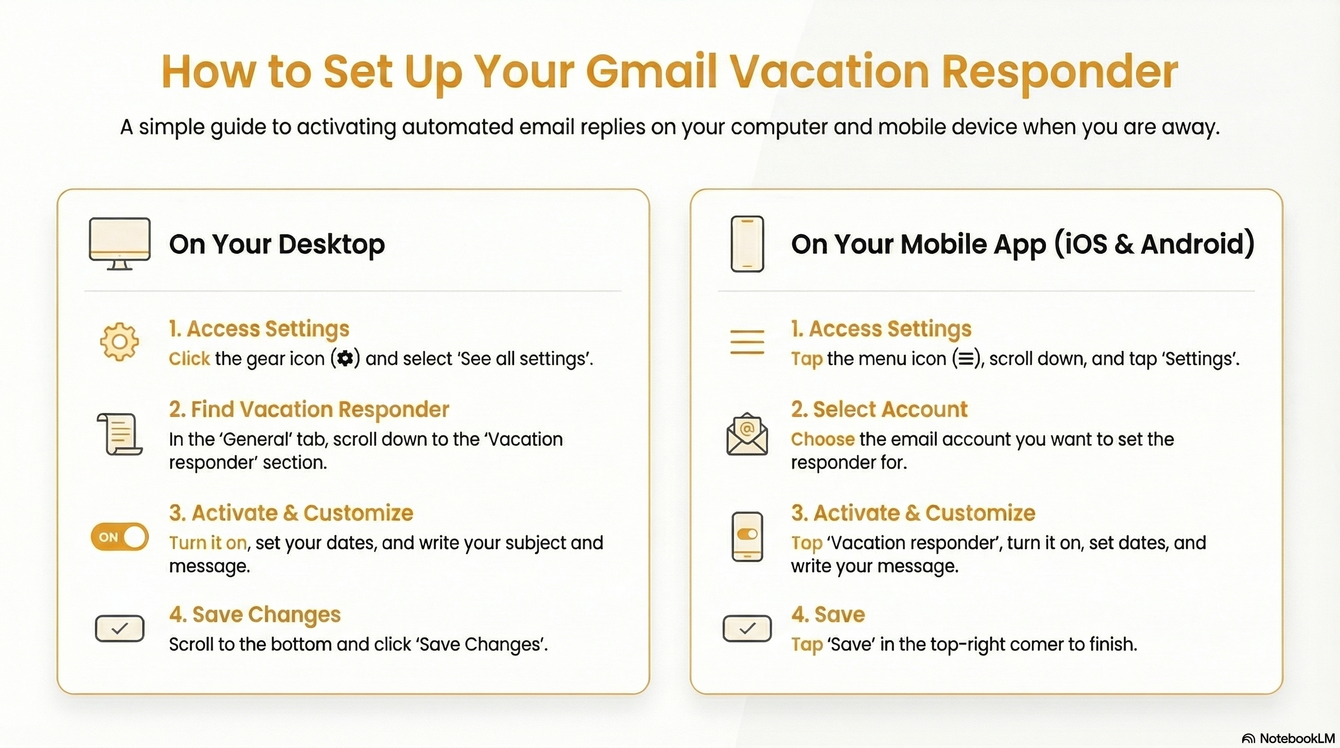 This guide explains what an out of office notice is, what to include, and how to set one up in Gmail on desktop and mobile.