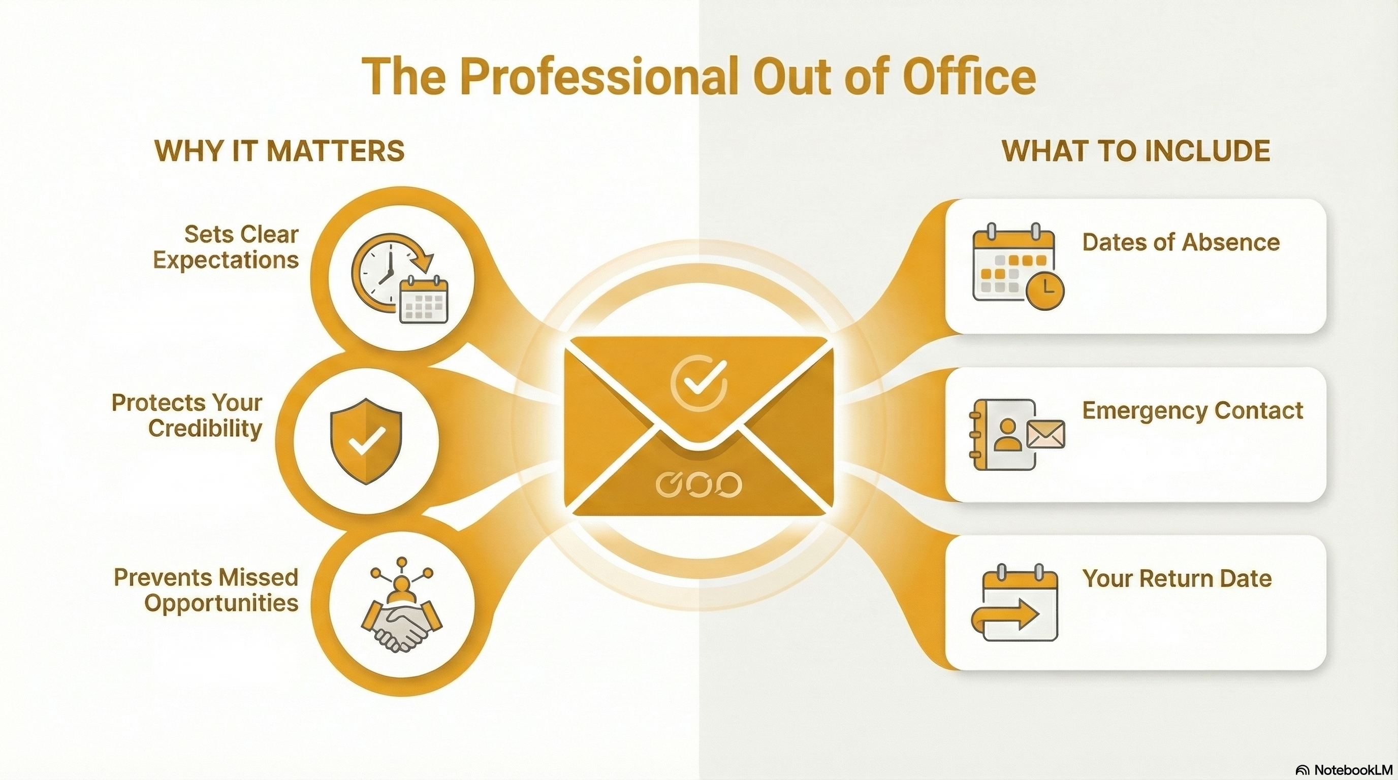 An out of office notice may seem minor, but it reflects how thoughtfully you manage professional communication.