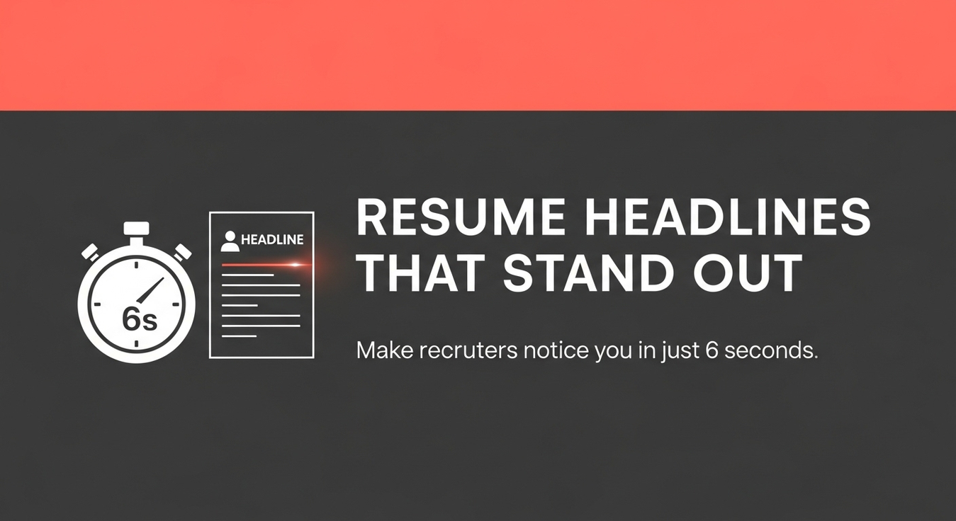 Why does a strong resume headline matter?Recruiters spend only about 6 seconds reviewing a resume, so a strong headline helps you stand out. 55% of first impressions are made by what we see visually.