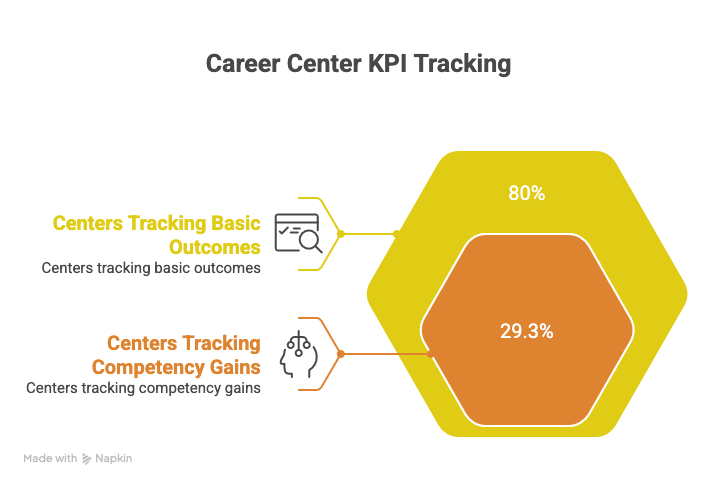 Shift your focus from volume to value by tracking "Career Readiness Gains" and "Career-Linked Retention" alongside traditional placement rates. While 80% of centers track basic outcomes, high-impact offices measure how career engagement reduces underemployment and increases a student’s likelihood of persisting to graduation by fostering a "sense of purpose."