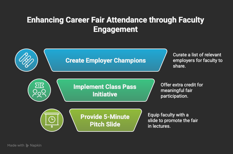- Create Faculty "Employer Champions": Don't just send faculty a list of employers. Do the work for them. Email department heads with a curated list of 3-5 companies attending the fair that are a perfect fit for their students. Include job titles, required skills, and the names of alumni recruiters at the booth. Ask them to share this targeted list with their classes.