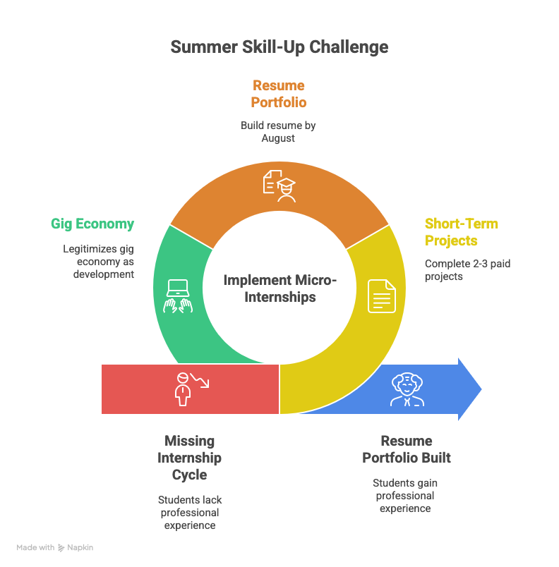 Implement a "Summer Skill-Up Challenge" utilizing Micro-Internships. Rather than shaming students for missing the traditional internship cycle, create a program where they complete 2-3 short-term, paid professional projects (Micro-Internships) facilitated by your center to build a resume portfolio by August.